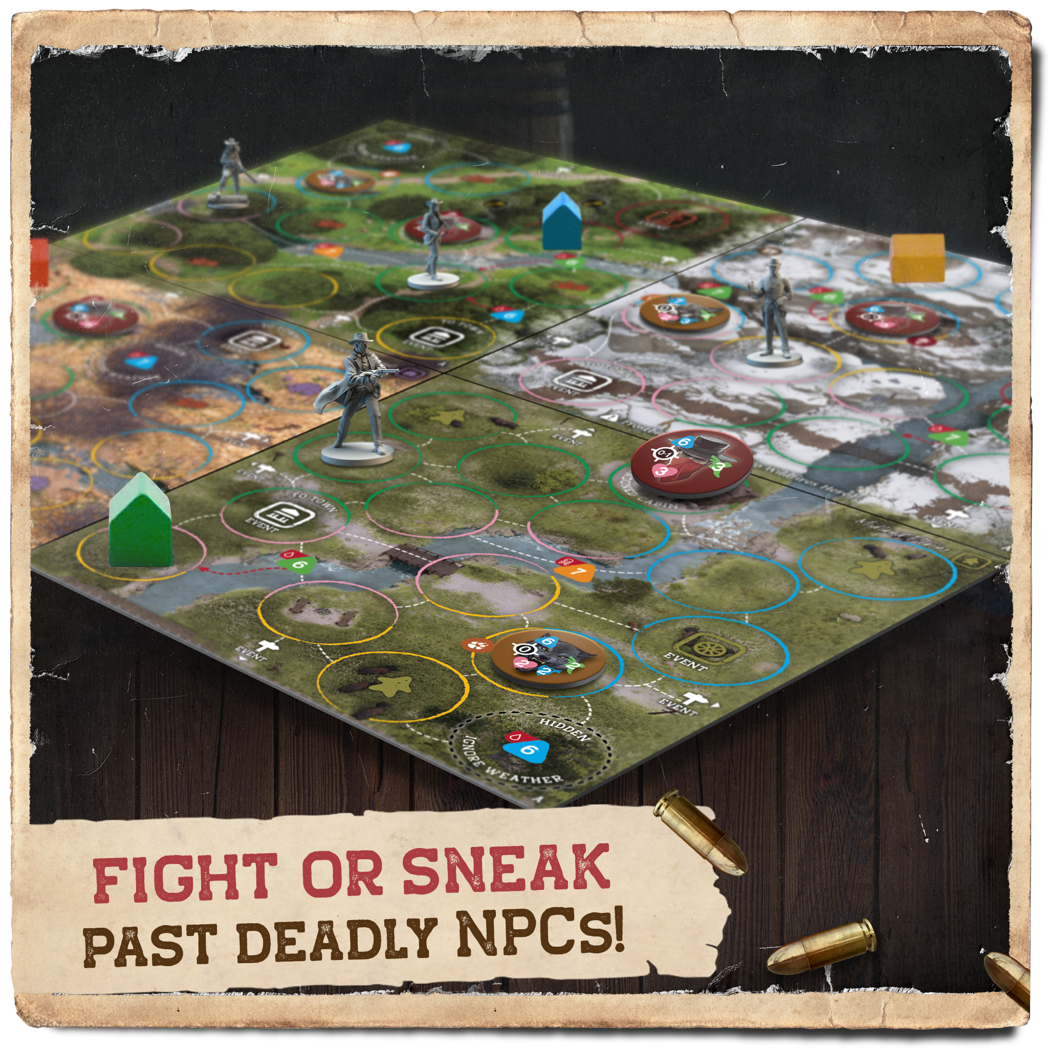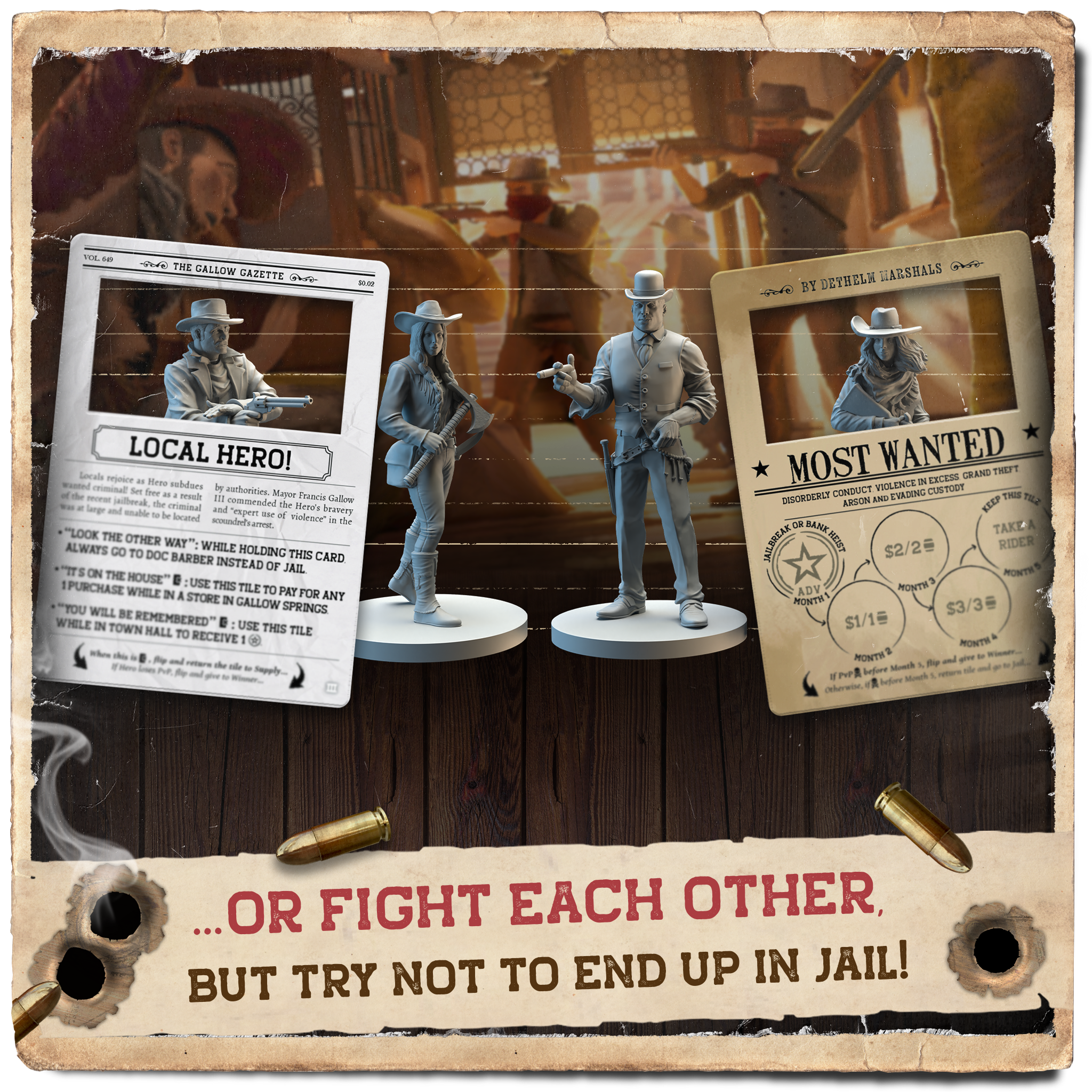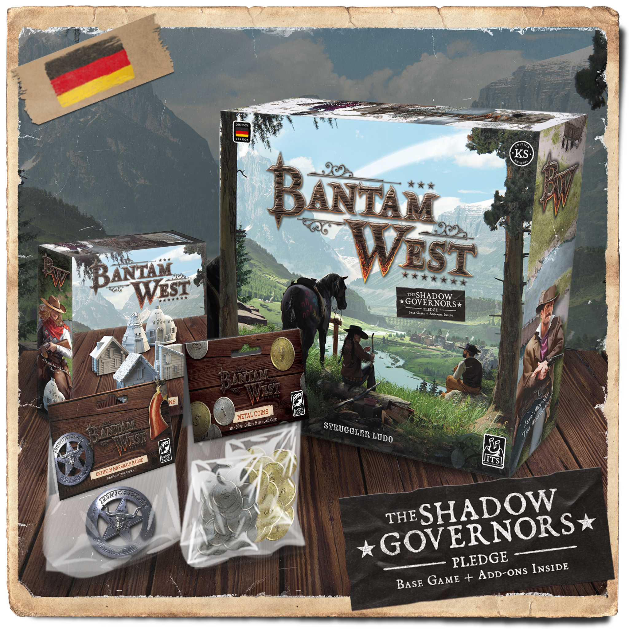 Bantam West is an ITS adventure board game for 1-4 players. Begin life anew as one of four Deadly Strangers who all just arrived in the outlaw town of Gallow Springs. Work, fight, build, and burn to become the most Notorious. It’s time to tell your own story.
